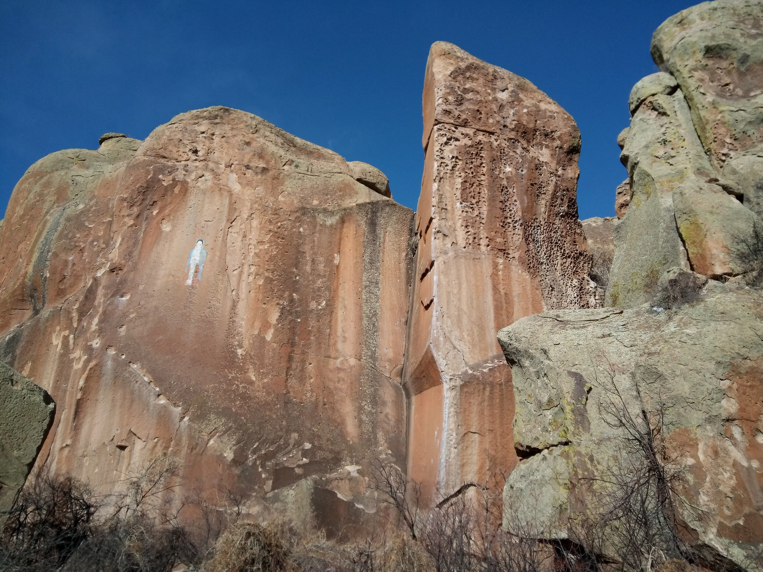 Penitente Canyon, Pictographs & Virgin Wall. Mother Mary, Our Lady of Guadalupe.